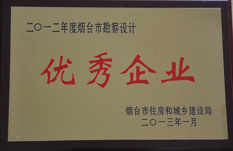 | 煙臺(tái)市勘察設(shè)計(jì)優(yōu)秀企業(yè) | 煙臺(tái)市住房和城鄉(xiāng)建設(shè)局 | 2013-01 |