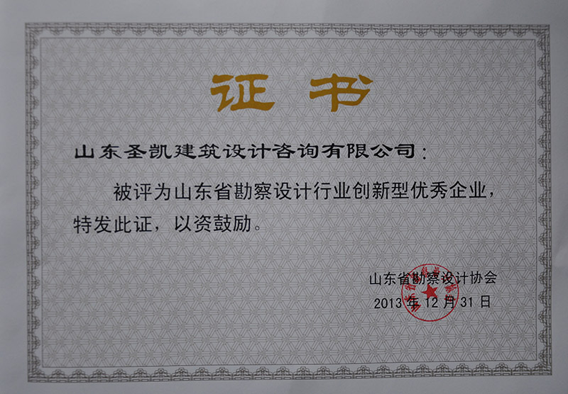 | 山東省創(chuàng)新型優(yōu)秀企業(yè) | 山東省勘察設(shè)計(jì)協(xié)會(huì) | 2013-12 |
