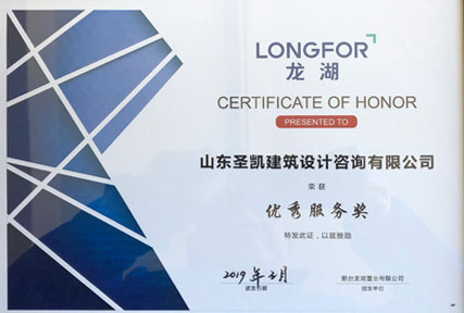 公司獲得煙臺(tái)龍湖置業(yè)有限公司2018年度優(yōu)秀服務(wù)獎(jiǎng)